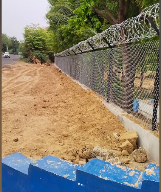 Barbed wire fencing is one of the most effective and economical boundary protection systems. It is widely used for farms, plots, industrial land, and open areas to prevent unauthorized entry.